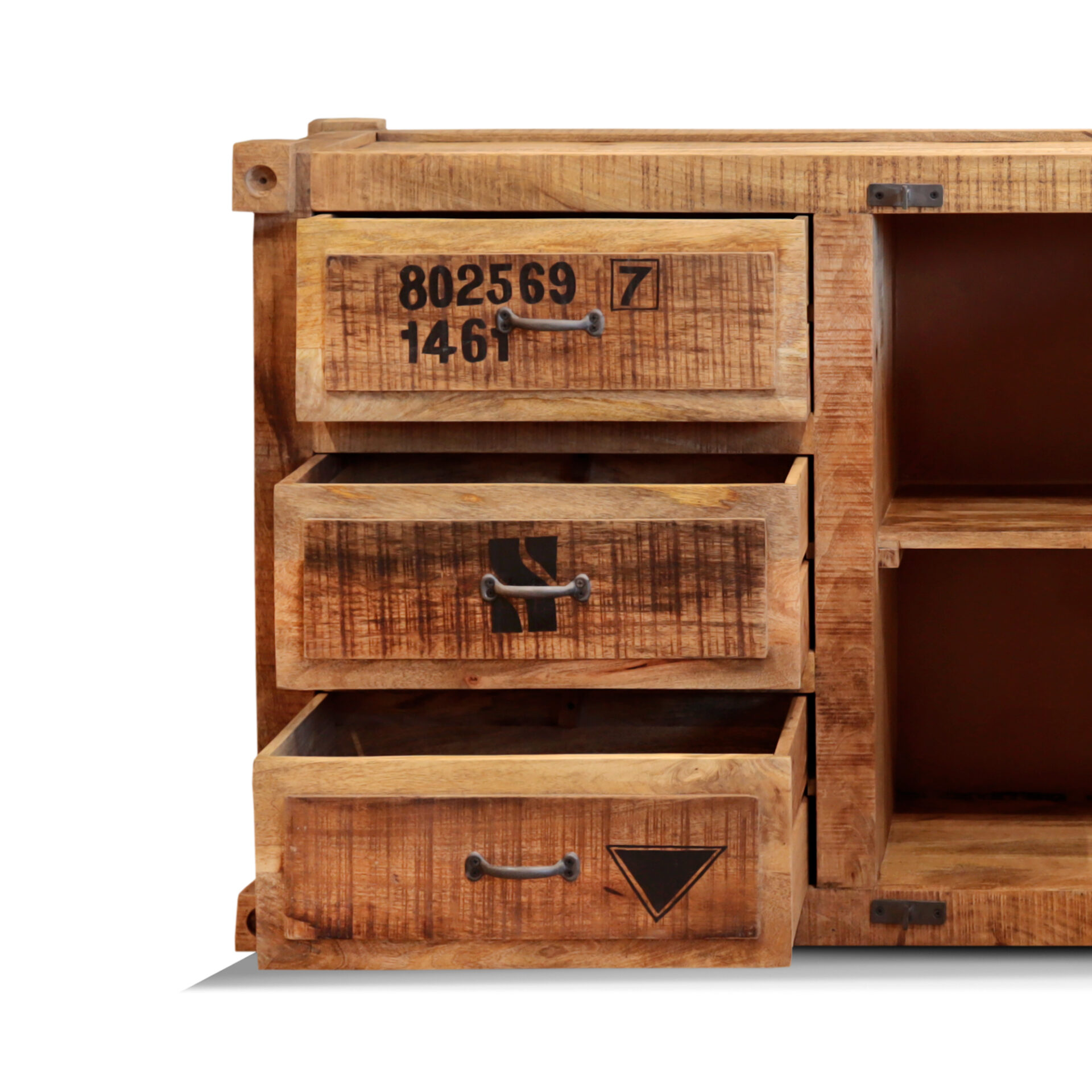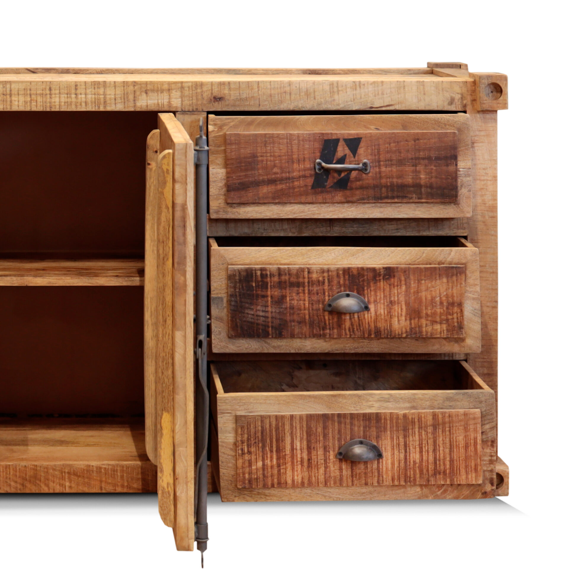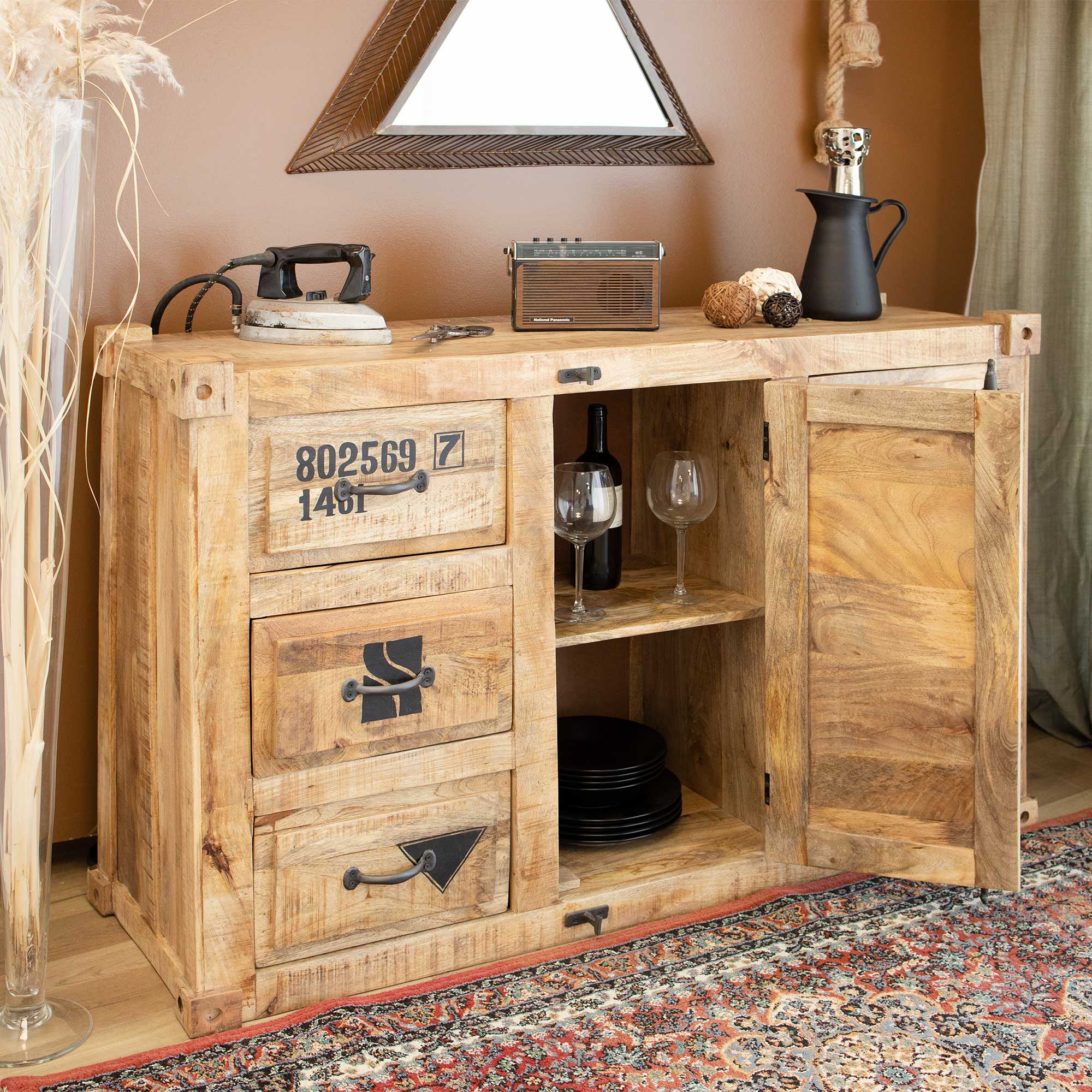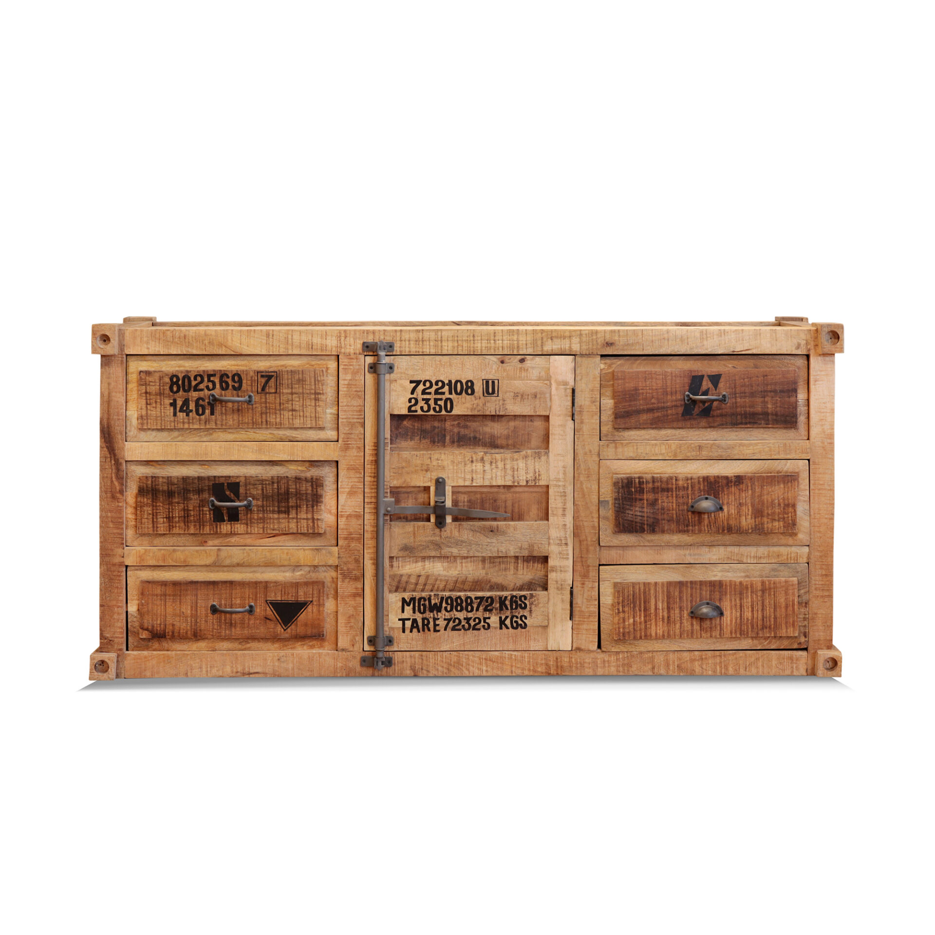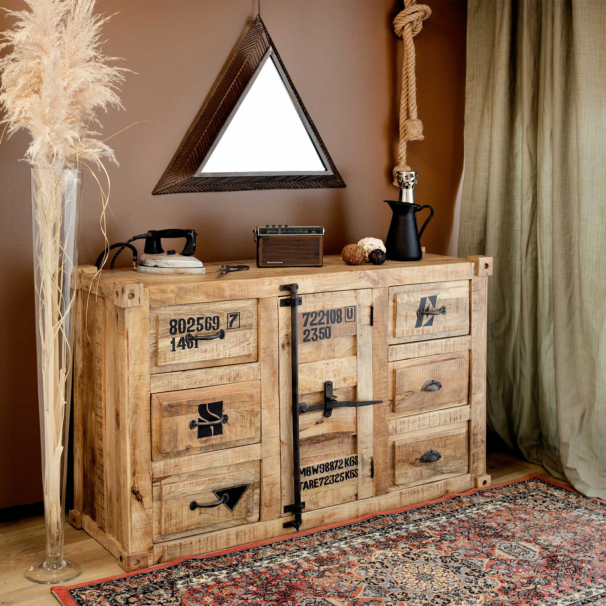 Madia in legno di mango con 6 cassetti e 1 sportello.