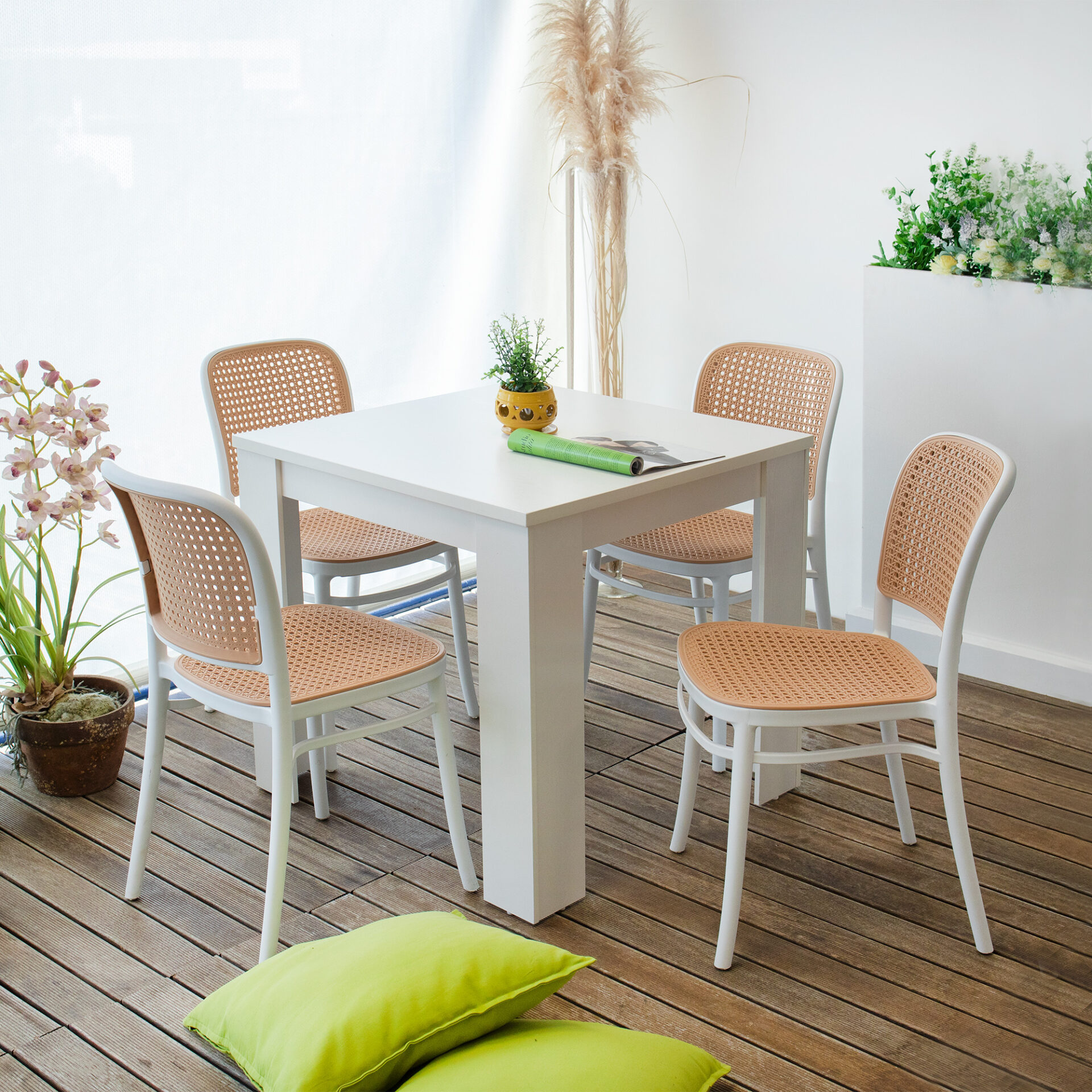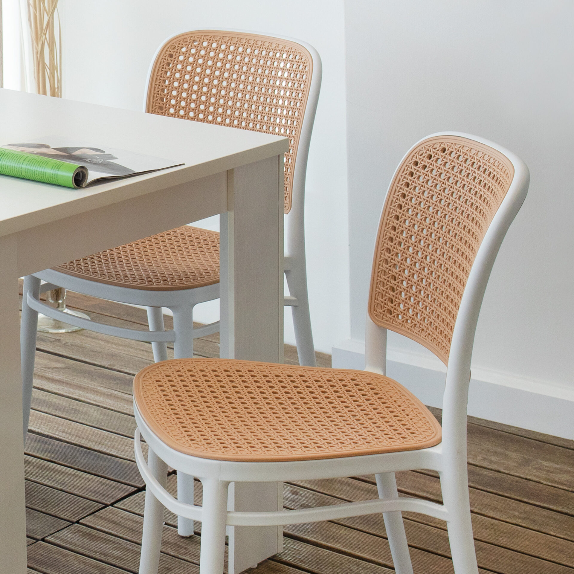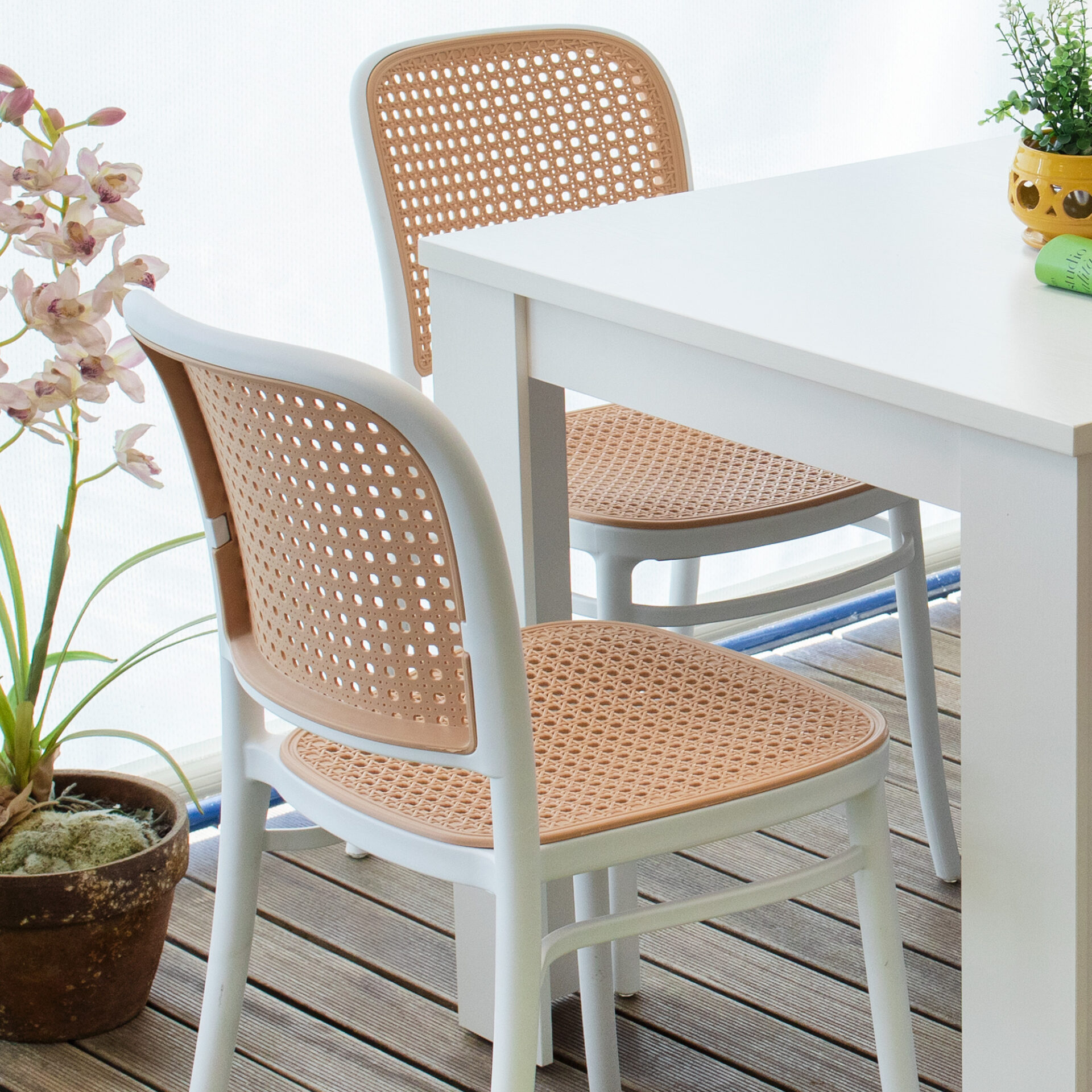 Il design della sedia Cosette ricorda quello delle eleganti e classiche sedie, ma reinventato con un materiale moderno e versatile, il polipropilene. Il contrasto di colori tra il beige dello schienale e della seduta, entrambi leggermente forellati, e il bianco della struttura dona alla sedia un carattere deciso e particolare. Ideale per uso sia all’interno che all’esterno, è perfetta per arredare una cucina o un living, oppure un patio o un locale.
