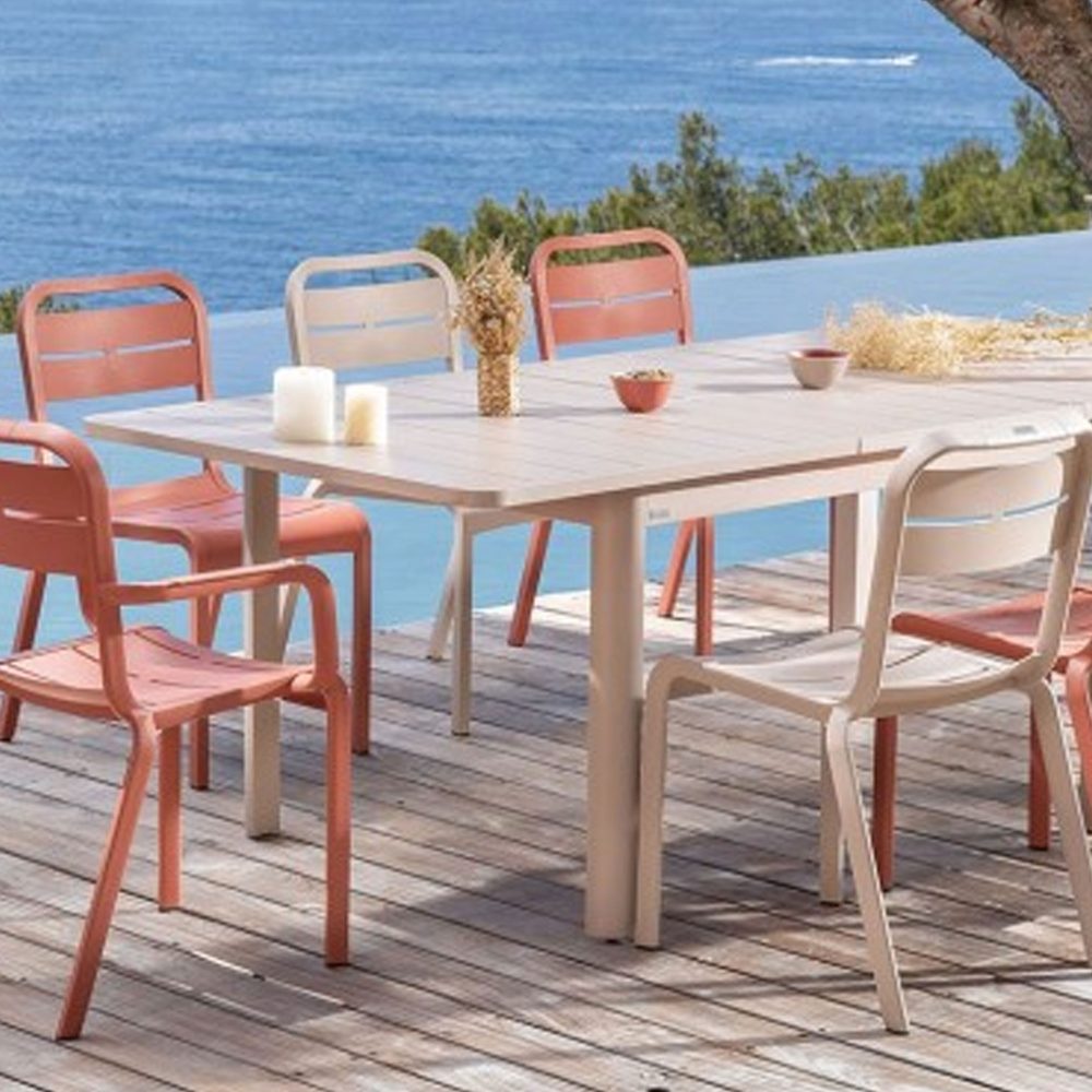 Un tavolo elegante e raffinato, perfetto per patio, terrazzo, giardino ma anche per living moderni. Il tavolo Yard possiede due prolunghe che dal centro posso estendere il piano da 173 cm a 233cm.