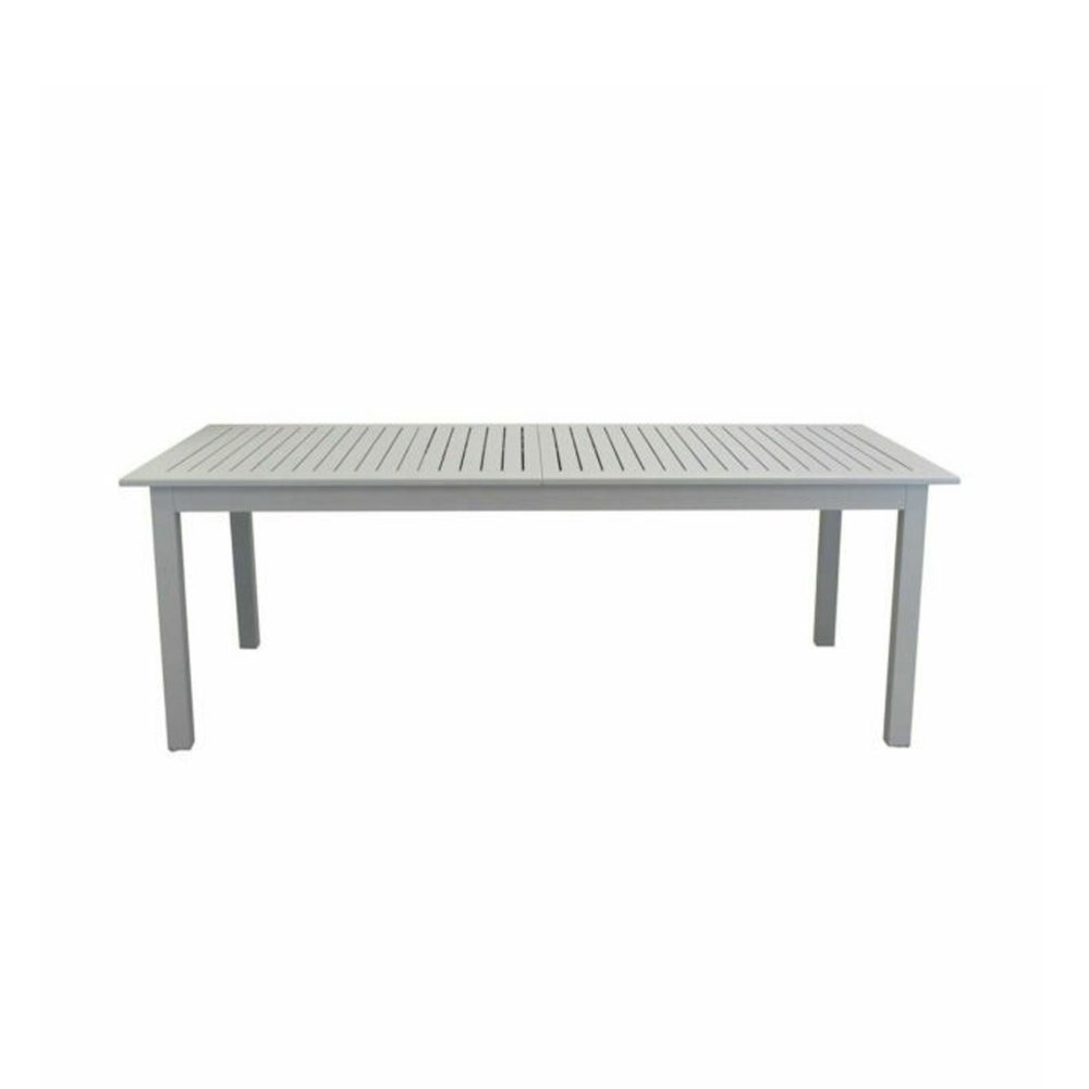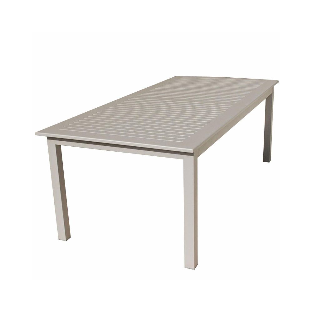 Tavolo realizzato interamente in alluminio con prolunghe.